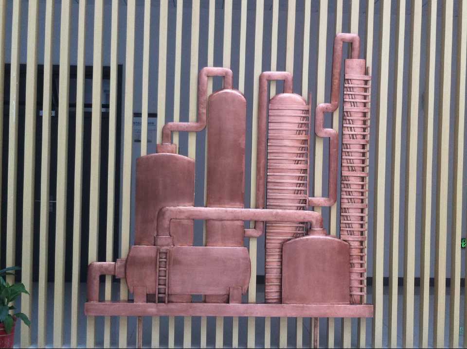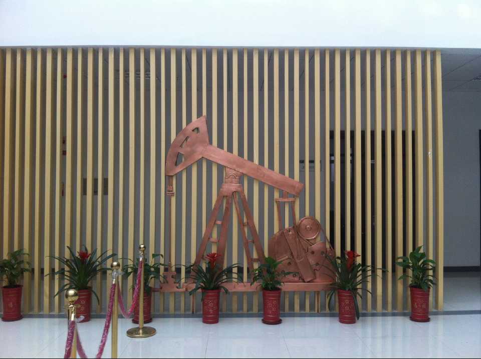 抽油機(jī)及化工廠鍛銅浮雕,2015年10月23日安裝于中國石油大學(xué)華東分校(青島市黃島區(qū))。材質(zhì):紫銅板。工藝:手工鍛銅。高:2.19米。