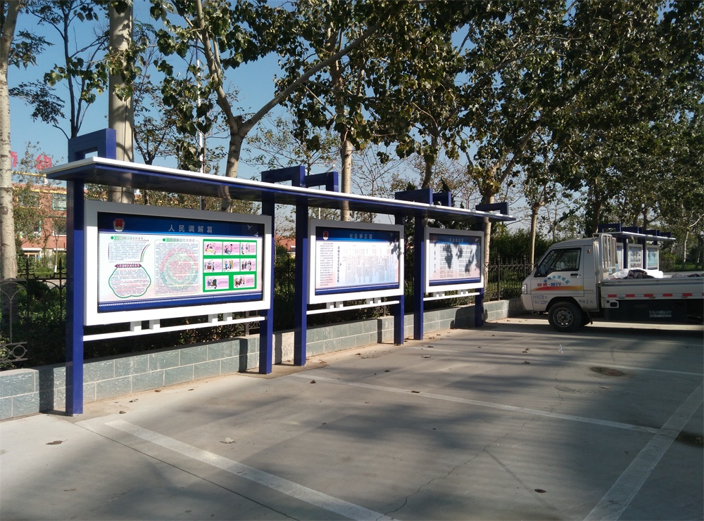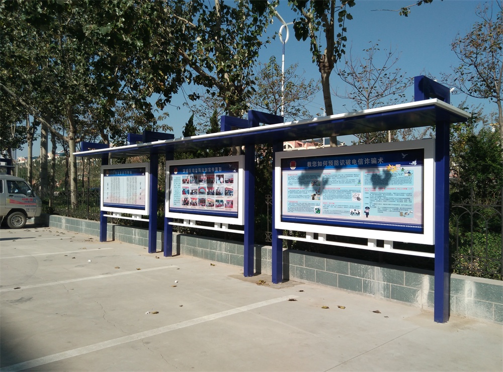 兩欄的宣傳欄高度為3米,長(zhǎng)6米,箱體2600mm*1400mm;三欄的宣傳欄,高2.7米,長(zhǎng)9米,箱體尺寸為1200mm*2400m。