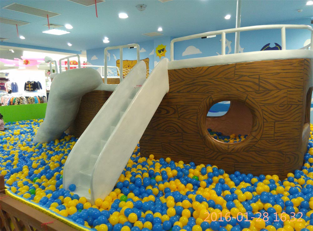 項目案例->大型玻璃鋼游樂船雕塑—濱州銀座黃河店4樓