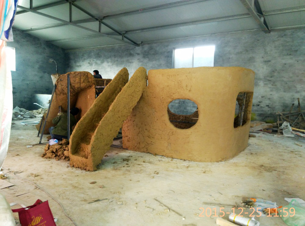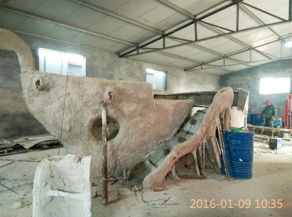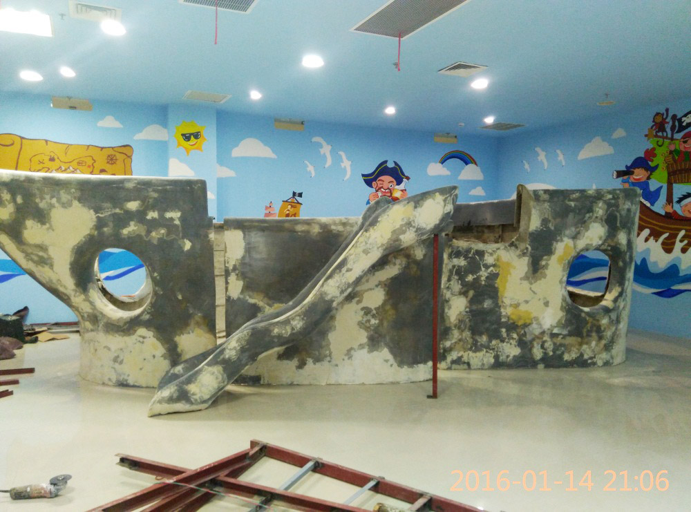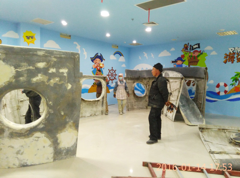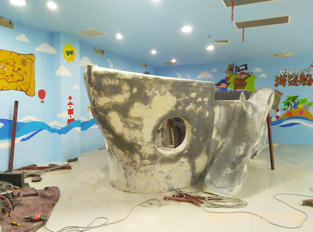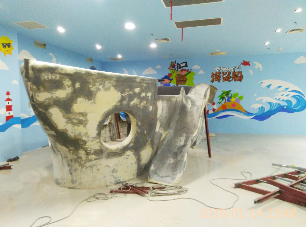 大型玻璃鋼游樂船雕塑竣工。2016年1月15-1月19日安裝于山東省濱州市黃河五路渤海十路銀座商城黃河店四樓。