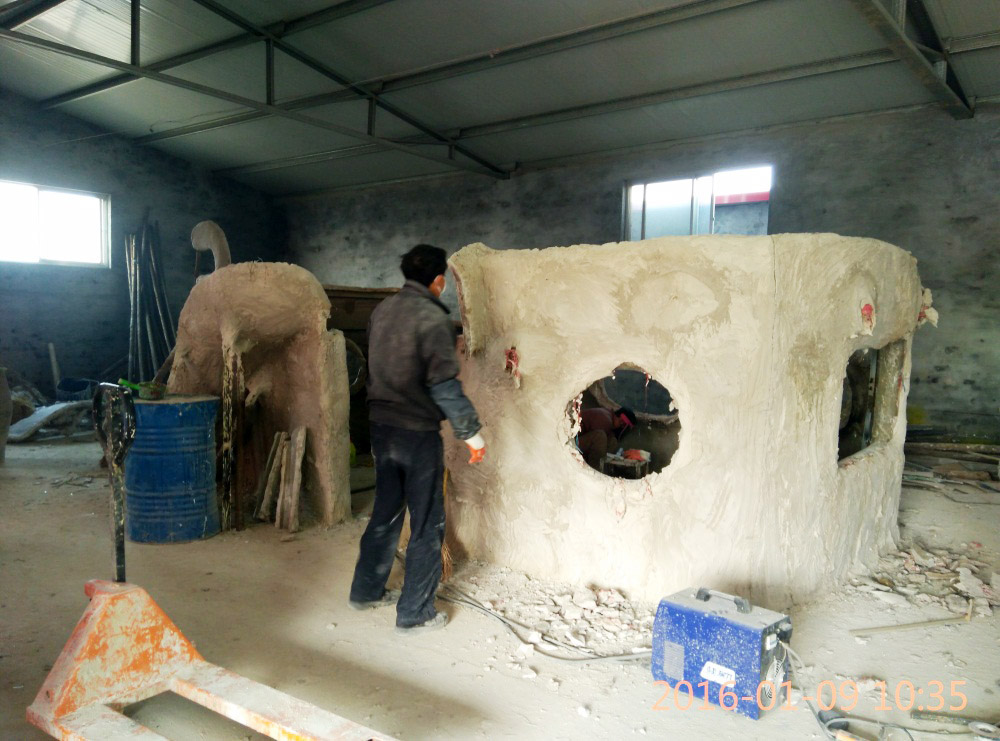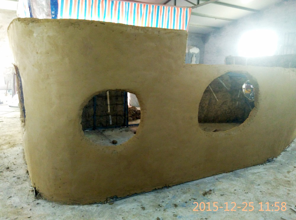 雕塑外形采用玻璃鋼材質(zhì),甲板采用鋼板和玻璃鋼材質(zhì)雙層材質(zhì),內(nèi)置金屬骨架,表面彩繪。游樂船長度7.2米,寬度3.2米。
