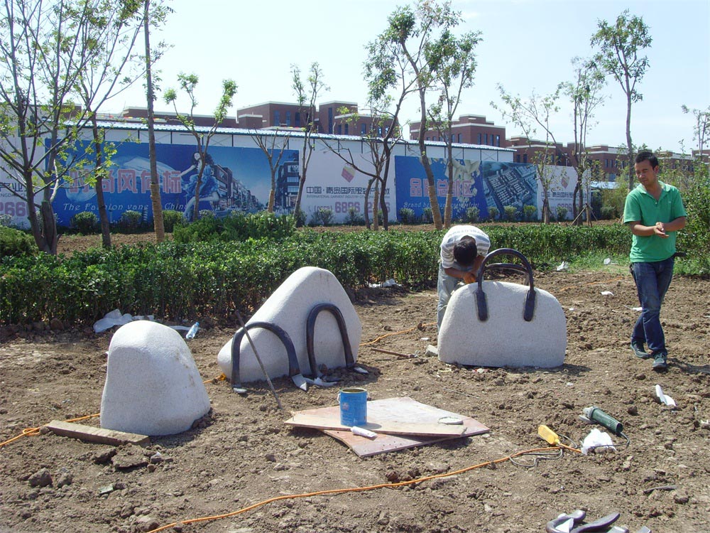 本項目包括:不銹鋼雕塑——“舞”,不銹鋼雕塑——“針線之美”,不銹鋼雕塑——“凌空之剪”,玻璃鋼雕塑——“美人之座”,玻璃鋼雕塑——“紐扣座椅”。制作歷時2個月。