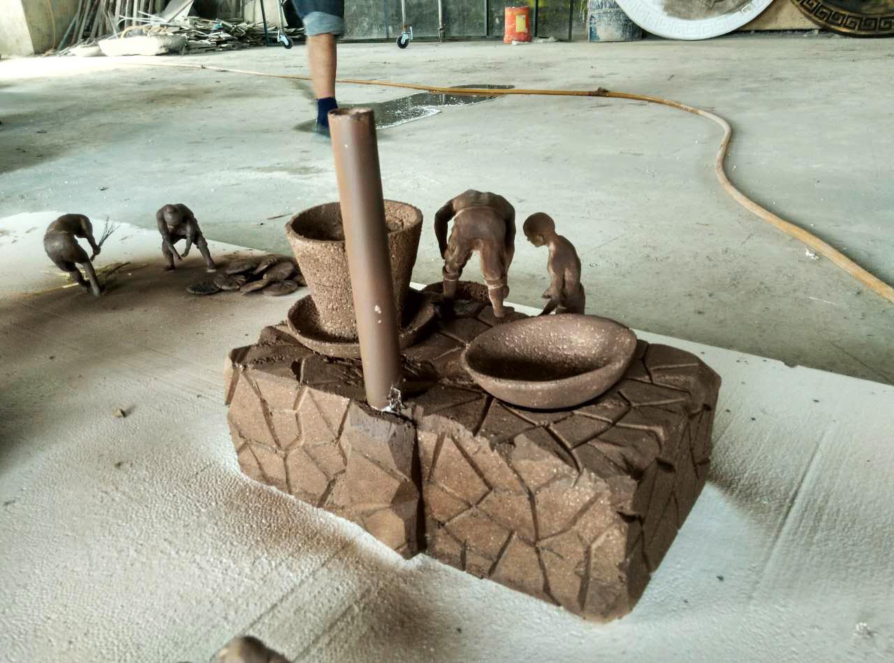 作品簡介:用群雕的形式再現(xiàn)來了中國傳統(tǒng)的釀酒工藝和壓榨花生油工藝。作品中人物材質為泥塑,更能傳統(tǒng)、民俗、古樸的風格。