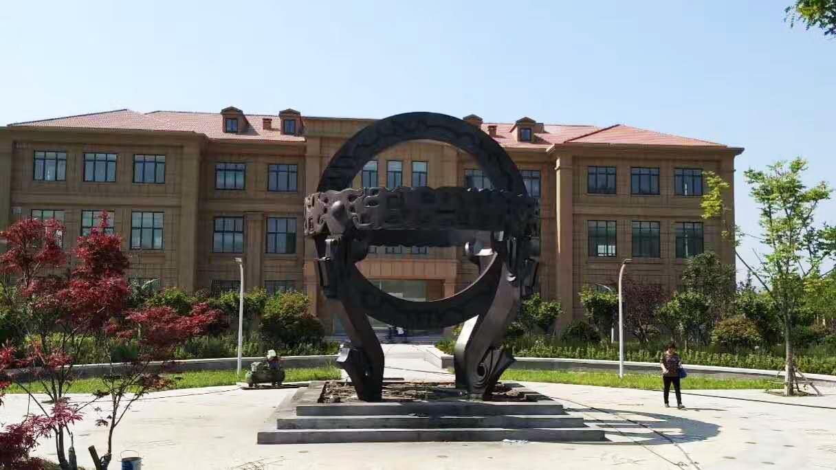 景觀小品《渾然天成》以張衡的銅鑄渾天儀為原型,主體是經(jīng)緯交織的兩層空間構成。兩個有厚度圓形代表經(jīng)緯,構成中空的球形空間,圓形上刻畫著星宿、黃道、赤道、恒穩(wěn)圈、恒顯圈等天體元素,