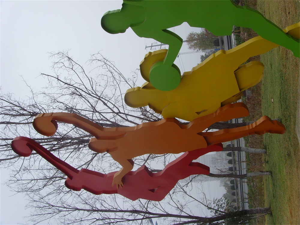 2012年7月,安裝于濱州市經(jīng)濟(jì)開發(fā)區(qū)黃河明珠文化廣場(chǎng)。雕塑材質(zhì)為不銹鋼,手工鍛造成型,表面氟碳漆著色。